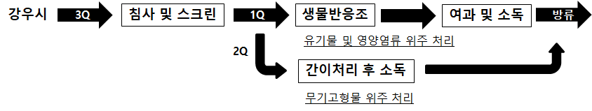 - 하수처리시설에 유입된 하수(3Q)중 1Q는 하수처리시설에서 정상처리하고, 2Q는 간이하수처리시설에서 처리 후 공공수역에 방류