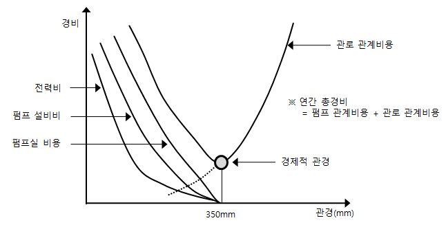 - 도송수관경, 펌프양정 등 상관관계를 조합하여 결정