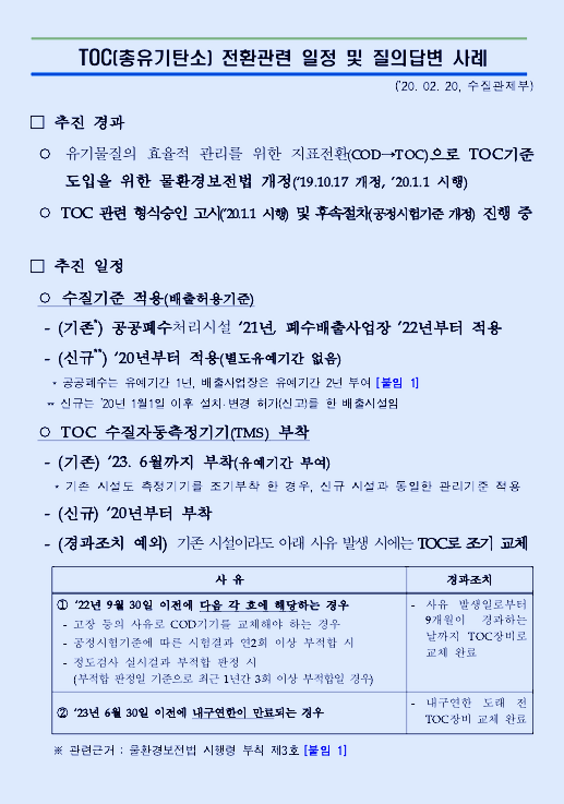 답 1. 공공하수처리시설의 유기물질 지표를 CODMn에서 TOC로 전환한 배경