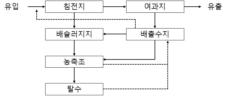 - 크게 2가지로 침전지 슬러지와 여과지 역세척 배출수임