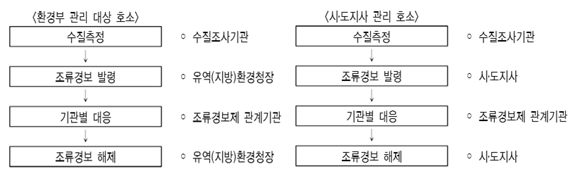 - 조류경보 발령 및 대응체계