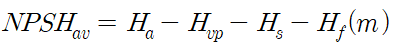 - NPSHav(available)와 NPSHre(require) : 수두(m) 혹은 압력(bar)으로 표시