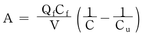 - 각각의 C값에 대하여 얻은 V값을 고형물 부하에 의한 식에 대입하여 A값을 구하고 여러 가지 A값 중에서 가장 큰 것을 수면적 부하에 의한 식으로부터 구한 A와 비교하여 둘 중에서 큰 값을 소요단면적으로 취함