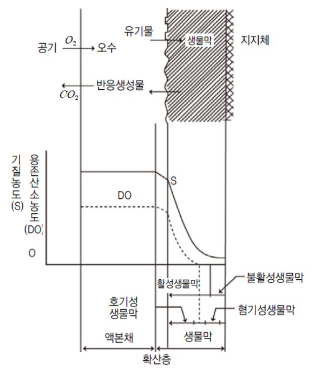 - 생물막법은 호기성뿐만 아니라 무산소, 혐기공정에서도 적용가능