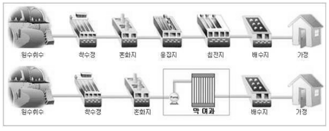 답 3. 기존 정수 시스템과 수도용 막여과의 공정구성