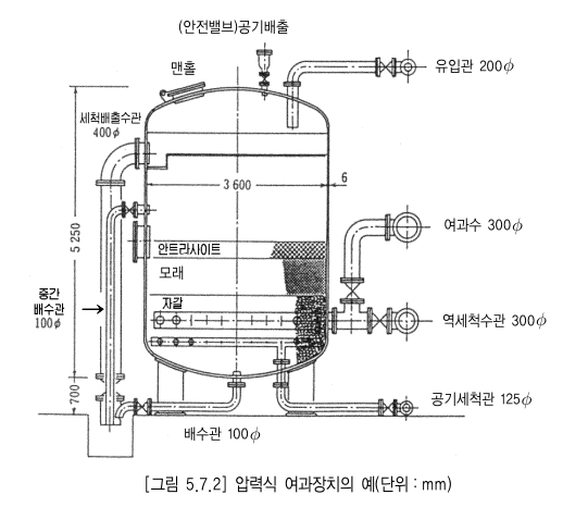 - 장치가 복잡하고 손실수두가 크며 부압 발생 → 여과수질 악화 우려